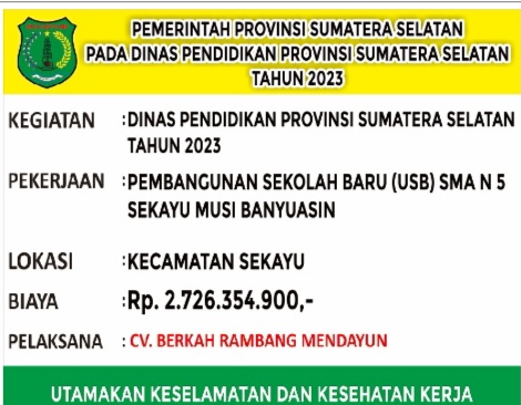 SN-Sekayu-Kegiatan Dinas Pendidikan Provinsi Sumatera Selatan Tahun 2023 pada pekerjaan Pembangunan Sekolah Baru (USB) Sekayu Musi Banyuasin yang berlokasi di Kecamatan Sekayu dengan menelan anggaran biaya fantastis hampir 3 Milyar namun sayang pembangunannya terkesan amburadul