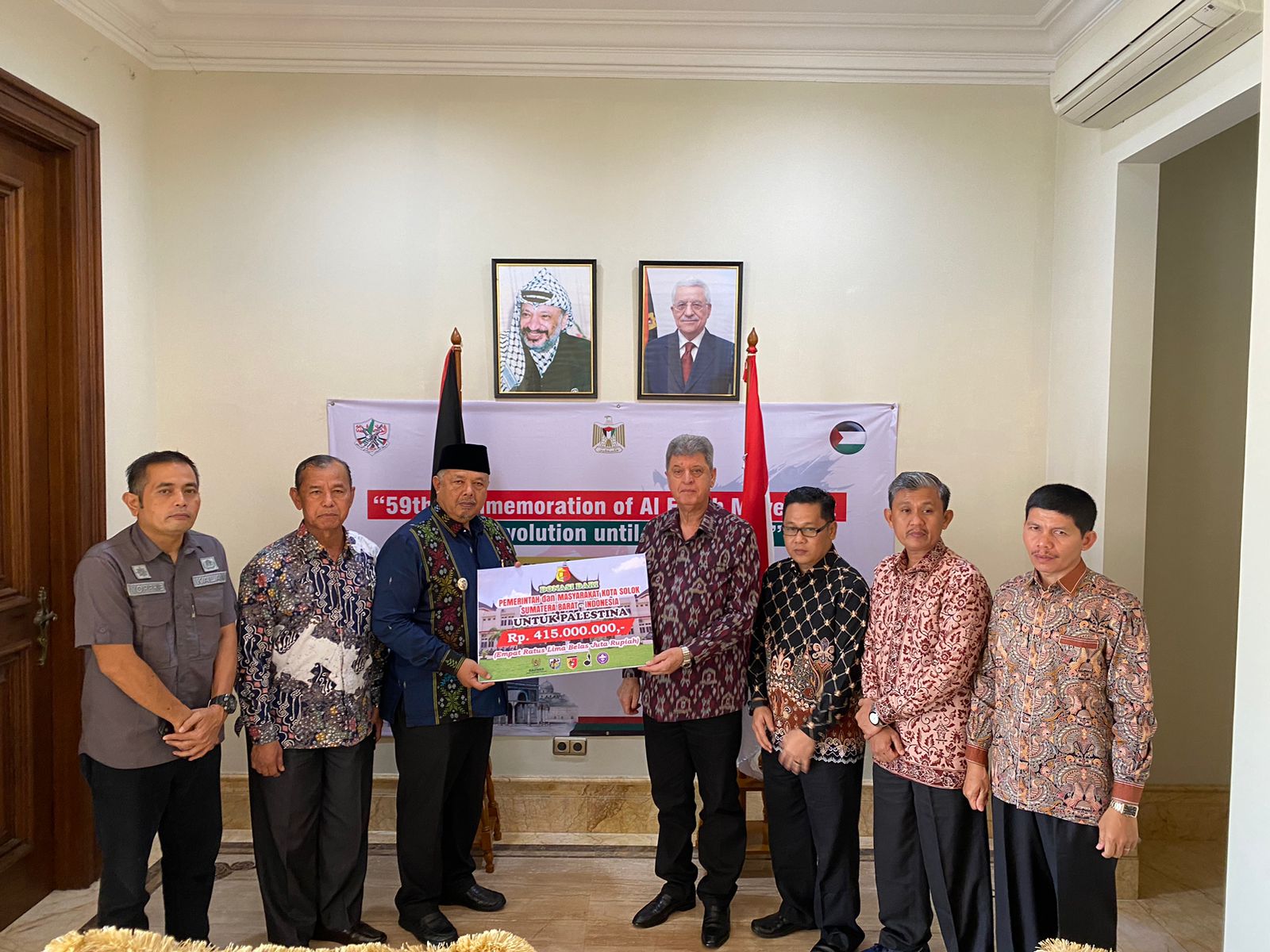 Donasi tersebut diserahkan langsung oleh Wali Kota Solok, H. Zul Elfian Umar kepada Dubes Palestina, Dr. Zuhair Al-Shun di Kantor Kedubes Palestina. Penyerahan didampingi Ketua BAZNAS Kota Solok, Zaini, Kepala Dinas Kominfo, Heppy Dharmawan, dan Kabag Kesra, Feri Hendria.