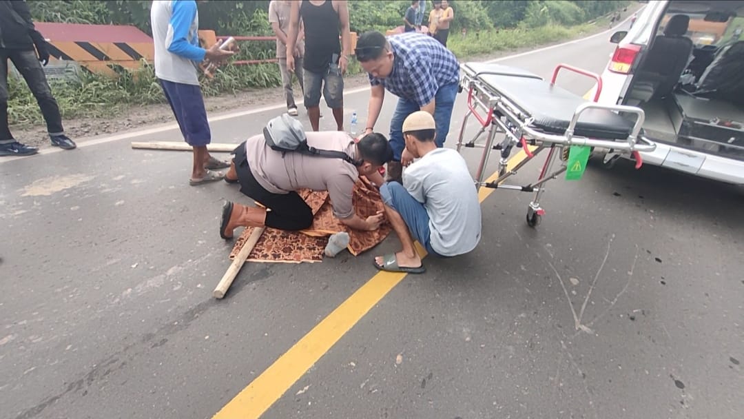 Giat Patroli Jalan Raya,Iptu Marlin Evakuasi Warga Lakalantas Di Jalan Palembang Jambi