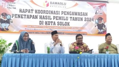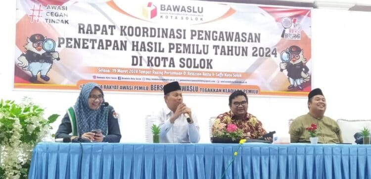 STRAIGHTNEWS.ID…Solok Kota….lll..Bawaslu Kota Solok, Sumatra Barat melakukan rapat koordinasi pengawasan penetapan hasil pemilu tahun 2024 di Kota Solok di D’relazion, Selasa (19/03/24). Rakor itu dilakukan bersama pimpinan partai politik, Panwascam dan juga media massa.