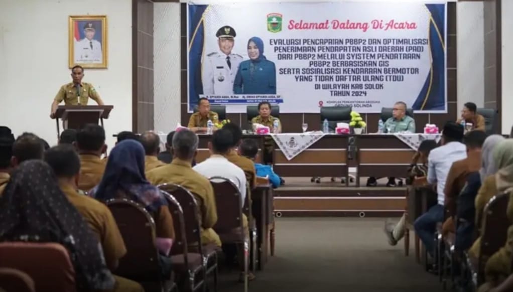 STRAIGHTNEWS.ID_Pemkab Solok…ll..Guna menargetkan capaian pembayaran PBB 80%, Pemkab. Solok mengelar Evaluasi Pencapaian PBBP2 dan Optimalisasi PAD dari PBBP2 melalui System Pendataan PBBP2 Berbasiskan GIS dan Sosialisasi Kendaraan Bermotor Yang Tidak Daftar Ulang di Wilayah Kab. Solok, pada Selasa (03/09/2024), bertempat di Gedung Solinda.