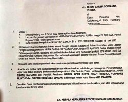 HUMBAHAS – Straightnews.id // Polres Humbang-Hasundutan melalui Satuan Reserse (Satres) telah menjawab Perkembangan Kasus Pelaporan Kepolisi (Dumas) pada tanggal 30 Appril 2025, dengan tertulis Surat Perintah Penyelidikan Nomor: SP LIDIK/107/V/2025/RESKRIM, tanggal 13 Mei 2025 dengan ditandatangani Kasat Reskrim Humbahas Jhon Frianto M Siahaan, S.H dan ditebuskan ke Kapolres dan Kasi Propam Polres Humbang Hasundutan.