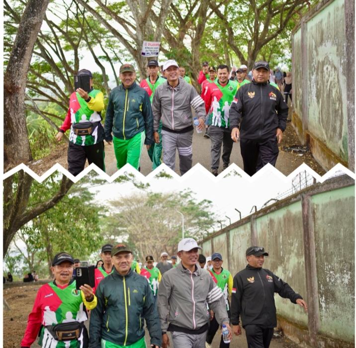 Straightnews.id_Arosuka Solok..///.Bupati Solok Jon Firman Pandu, melaksanakan kegiatan jalan sehat di kawasan GOR Batu Batupang Koto Baru Kecamatan Kubung pada Minggu pagi (13/07/2025). Dalam kegiatan ini, Bupati turut didampingi oleh Ketua TP-PKK Kabupaten Solok, Ny. Nia Jon Firman Pandu, serta sejumlah jajaran Pemerintah Kabupaten Solok.