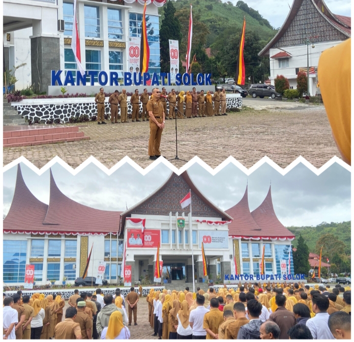 Arosuka Solok_Straightnews.id…lll…Bupati Solok Tekankan Semu Kepala OPD Agar Taat Aturan dan Semua ASN Tingkatkan Disiplin dan melaksanakan tugas. Hal Demikian disampaikan Bupati Solok melalui Sekwan Zaitul Ikhlas Bertindak sebagai komando apel pagi pada Senin 01 September 2025 di Halaman Kantor Bupati Solok, Arosuka. Apel pagi ini dipimpin oleh Sekwan Zaitul Ikhlas. Kegiatan ini juga diikuti oleh Sekretaris Daerah Medison, Para Staf Ahli, Para Asisten serta Kepala OPD dan seluruh Aparatur Sipil Negara (ASN) dan tenaga honorer di lingkungan Pemerintah Kabupaten Solok.