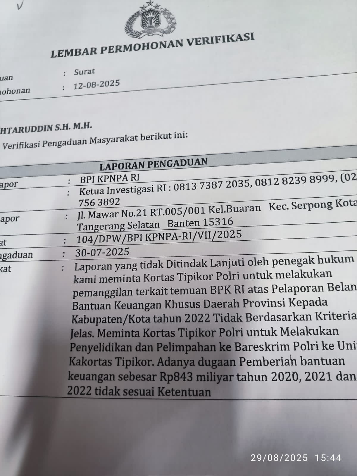 Ketua Harian Laskar Prabowo 08 DPD Sumsel Feryandi SHDM menjelaskan, auditor negara BPK RI, TAPD Sumsel belum punya pedoman melakukan verifikasi atas usulan bantuan khusus untuk Kabupaten/Kota.