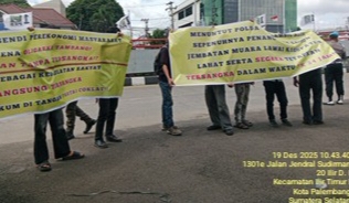 Straightnews.id |Palembang _ Gerakan Mahasiswa dan Pemuda Lahat (GEMAPELA) unjukrasa di Polda Sumsel, Jalan Jend. Sudirman KM 3,5 Pahlawan, Kecamatan Kemuning, Jumat (19/12/2025).